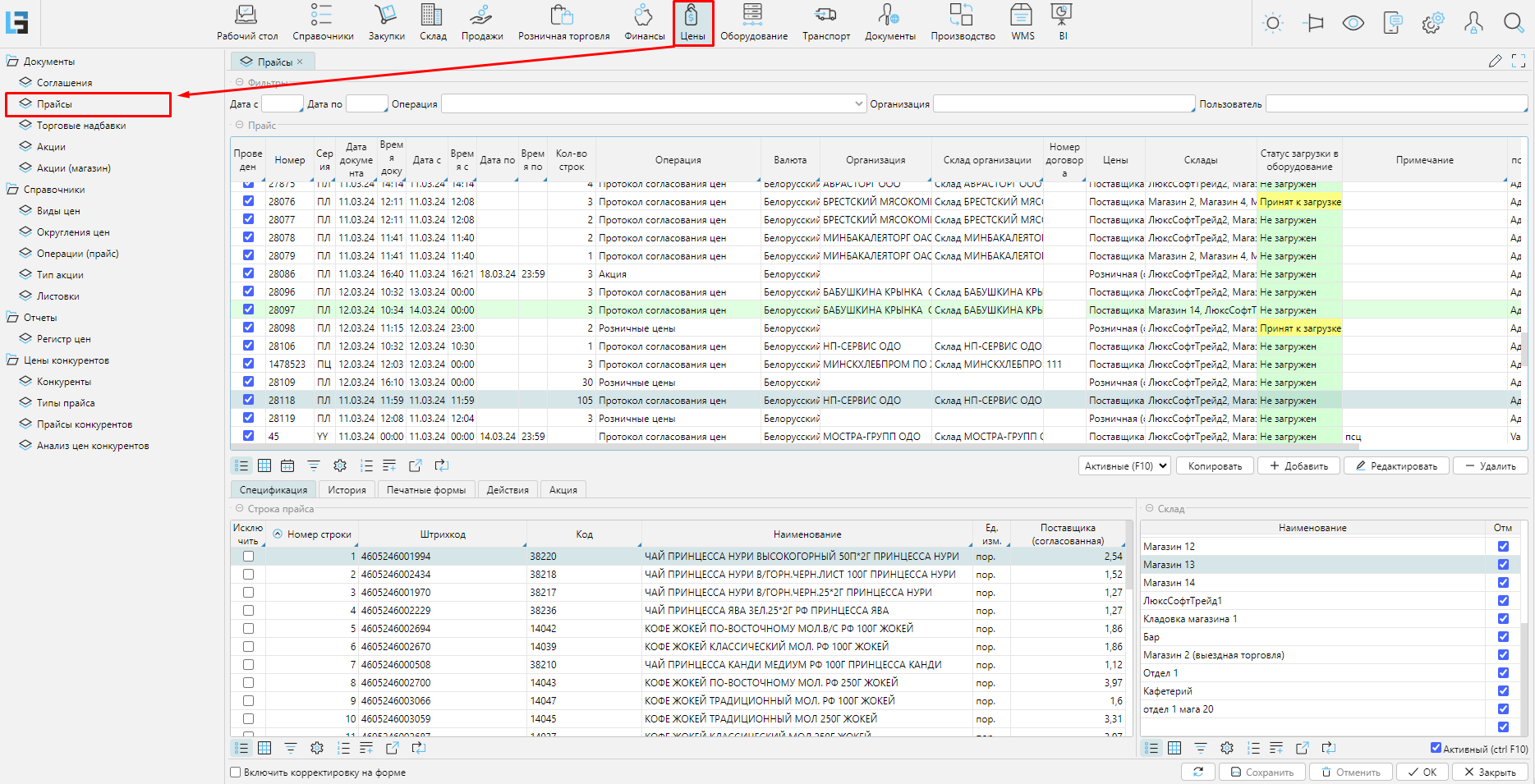 Автоматическая переоценка акционных позиций товара может быть осуществлена вручную или при помощи задания планировщика. Добавление акционного прайса осуществляется на форме** Цены\Прайсы:**
