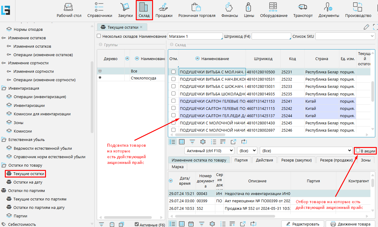 Автоматическая подсветка и возможность фильтрации акционных позиций в рабочих формах