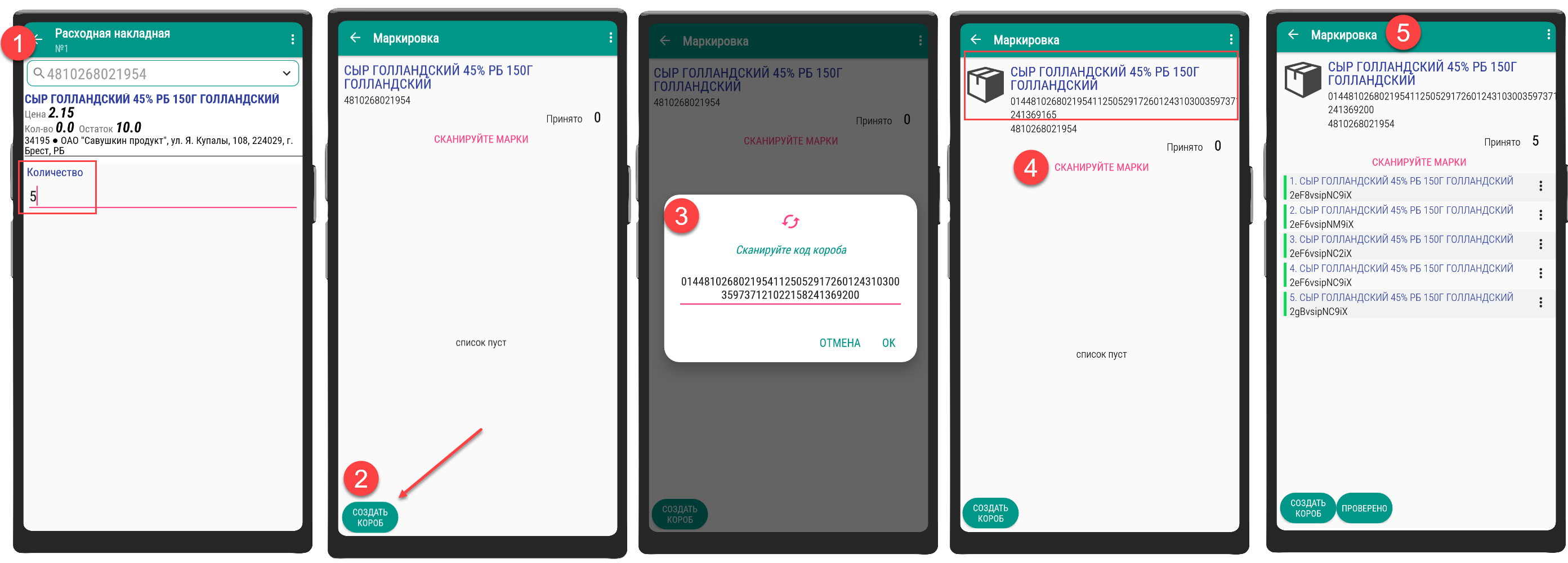 , вы вернетесь на предыдущий экран (п.п.3). Вы можете создать еще один короб, если не все товары упакованы, или вернуться к сканированию товаров и продолжить наполнять документ.