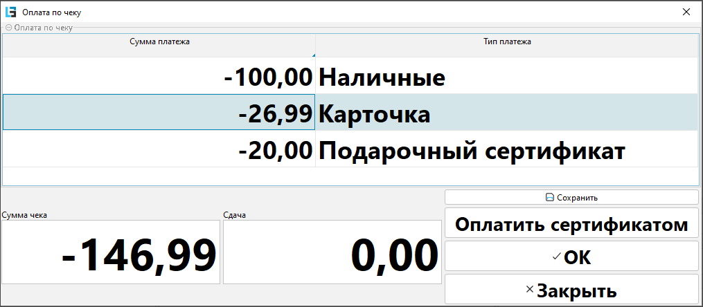- Произвести выплату по возврату аналогично оплате по чеку. Для возврата не используется смешанный платеж.