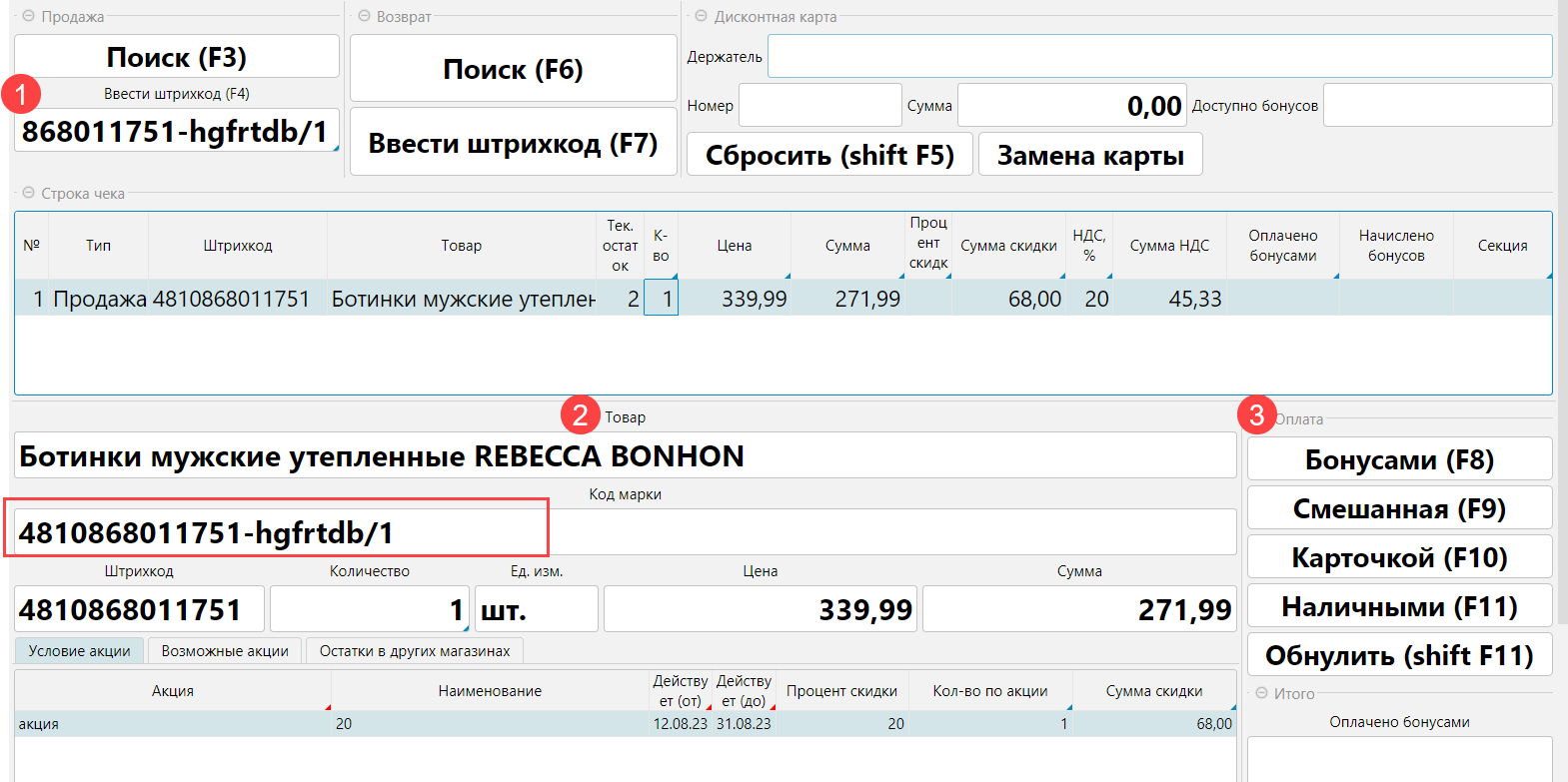 При использовании модуля управления продажами марки списываются при продаже через POS: