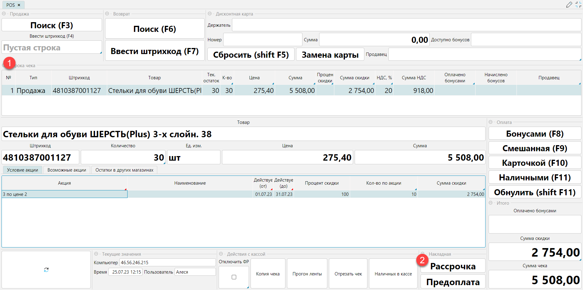 Кассир формирует чек