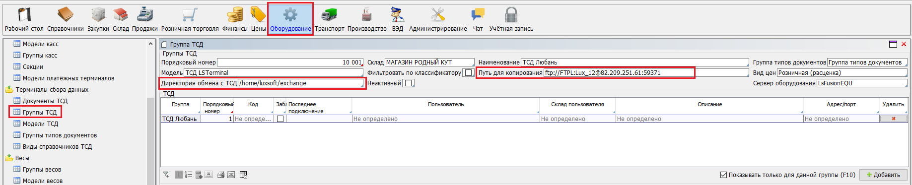Настройка групп ТСД во многом аналогична настройке для групп касс. Есть небольшие отличия: