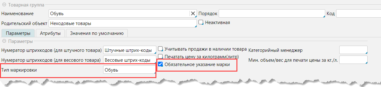 • Признак Обязательно указание  марки - с этим признаком программа не позволит сохранить/провести документ без указанной марки.