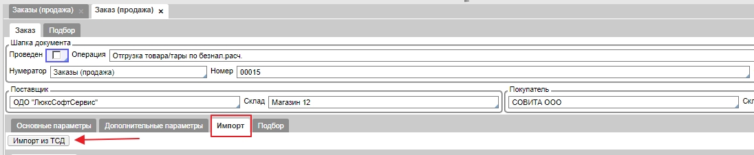 В форме Заказы - Продажи в форме ввода документа есть закладка Импорт на которой расположена кнопка Импорт из ТСД.