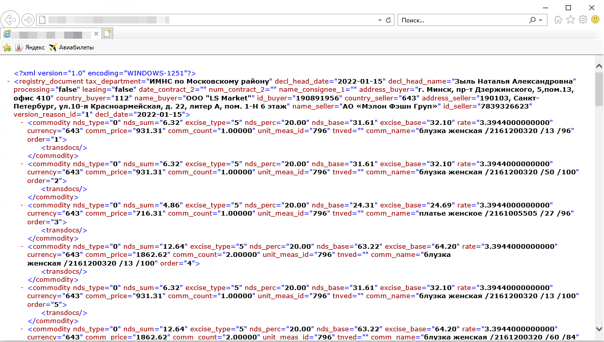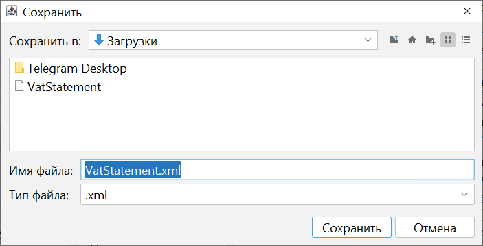 2 На форме Закупки - **Накладные ** нужно выделить накладную, по которой формируется заявление на НДС и на вкладке Действия нажать Выгрузить заявление НДС (XML). Если Вы работаете в десктоп клиенте, то программа запросит указать место на компьютере, куда сохранить файл (рис. 3). Если Вы работаете в web клиенте, то сформированный xml файл откроется в окне браузера, после чего его можно сохранить(рис. 4).