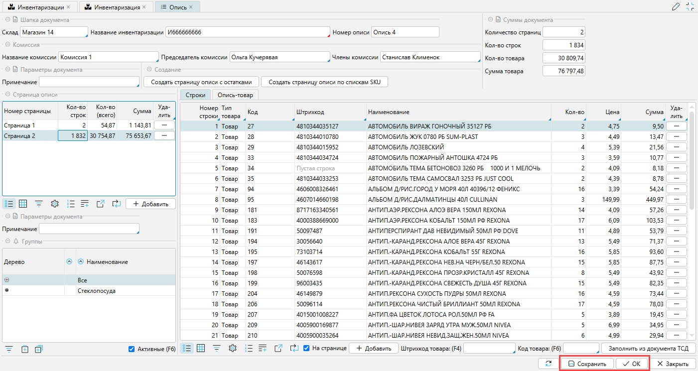 После добавления описи, ее нужно сохранить (Ок или Сохранить внизу формы).