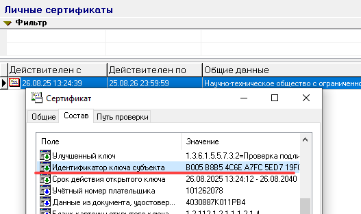 В качестве имени ключа необходимо указать значение Идентификатора ключа субъекта для необходимого сертификата
