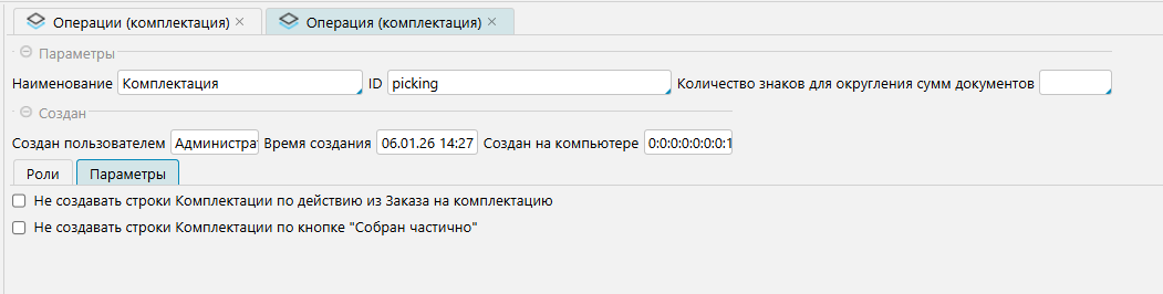 Не создавать строки Комплектации по кнопке "Собран частично" - при создании документа комплектации по кнопке Собран частично в комплектации не будут созданы строки. Обычно используется при импорте комплектации из ТСД.