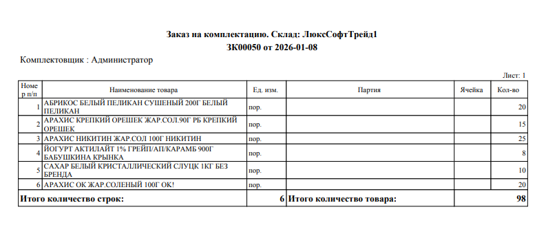 *Рис. 7 Отображение собранного заказа на форме Комплектация