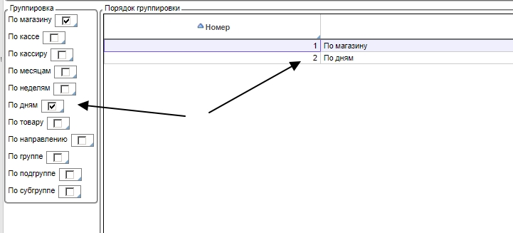Порядок проставления галочек формирует уровни группировки в отчете.