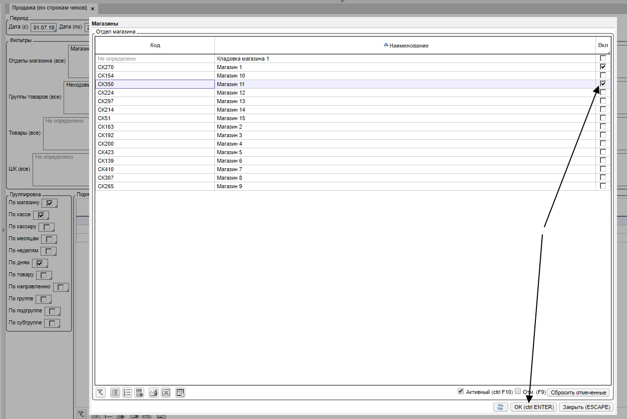 В любой указанной форме для формирования отчета можно воспользоваться группировкой, для этого необходимо поочередно проставить галочки в блоке Группировка (не более трех).