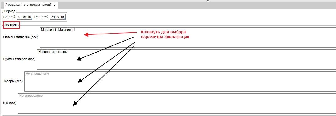 В любой указанной форме для формирования отчета можно воспользоваться фильтрацией, для этого необходимо кликнуть по полю и выбрать данные для фильрации.