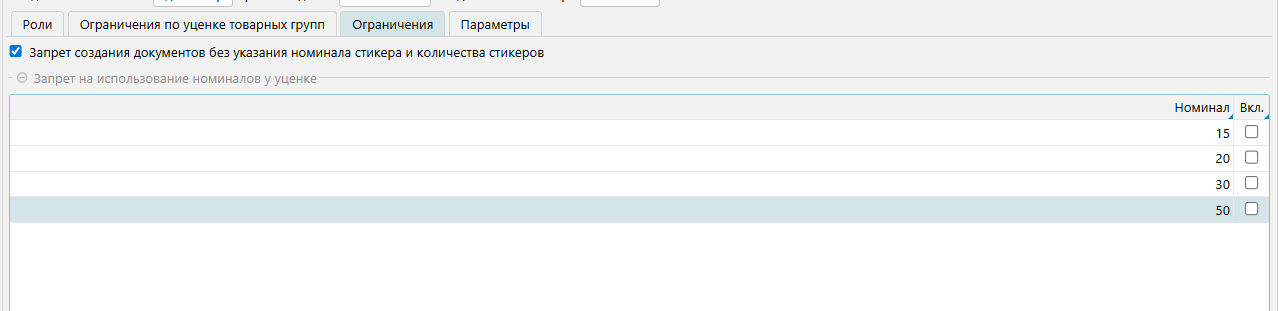 Можно отметить номиналы, которые будет запрещено использовать в операции.