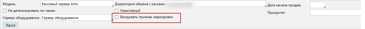 3) Для кассового сервера Артикс и EQS необходимо для группы касс отметить признак Выгружать признак маркировки.