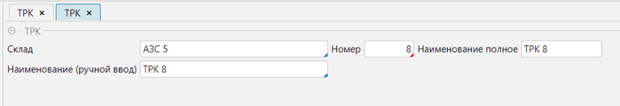 На форме АЗСТРК нужно создать топливораздаточные колонки для каждой АЗС (группы резервуаров). Для ТРК указывают обязательно Склад, Номер и можно вводить удобное Наименование вручную.