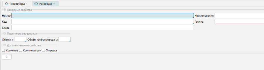Группа – выбрать группу резервуаров, к которой относится новый. Склад заполнится автоматически.