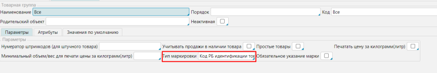 В карточке групп товаров, для которых используется маркировка, надо выбрать Тип маркировки.