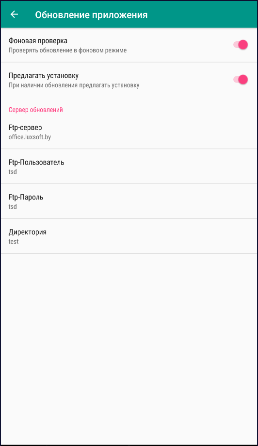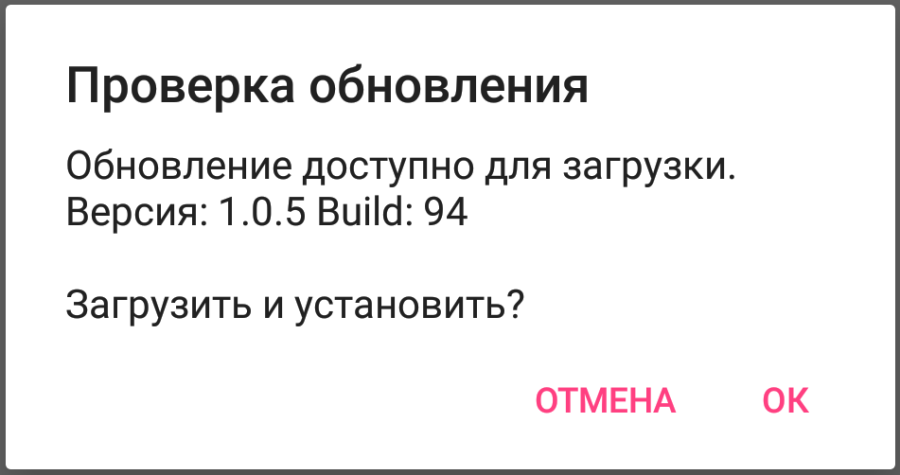 В программе реализована возможность обновления через ftp-сервер.- Фоновая проверка – при запуске модуля автоматически будет отправлен запрос на сервер на наличие новой версии программы. Проверку обновлений в ручном режиме можно запустить из служебного меню главного экрана (см. п. Главный экран). При ручном запуске запроса будет отображено сообщение об отсутствии или доступности новой версии. При автоматической проверке сообщение будет отображаться только при наличии новой версии на сервере.