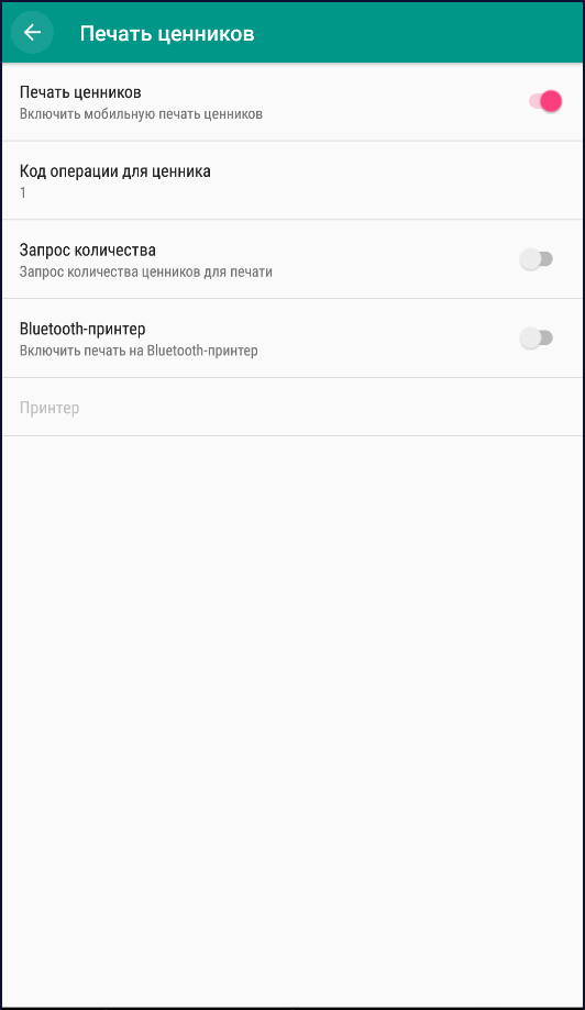Печать ценников – включает механизм печать ценников на Bluetooth-принтер