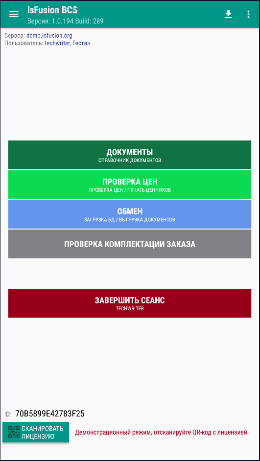 Отображение рабочего меню на главном экране- Автонумерация документа – автоматическая нумерация документа. При создании нового документа в поле «номер документа» будет подставляться значение счетчика. Каждый день счетчик начинается с единицы «1».