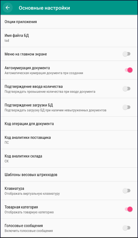 Рис. 4.2 Меню Основные настройки- Опции приложения – в данном меню активируются индивидуальные доработки