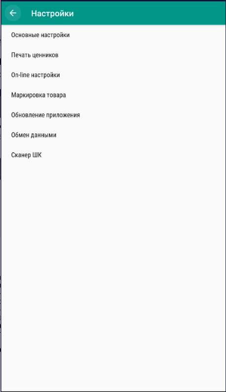 Меню Печать ценников- Печать ценников – включает мобильную печать ценников.