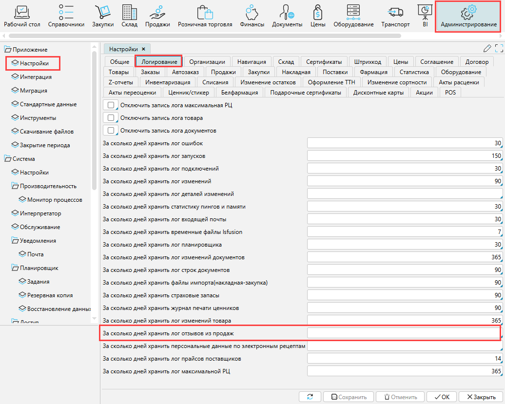 Данные по отзыву товаров хранятся в системе бессрочно. Можно установить срок хранения на форме Администрирование - Настройки - Логирование. В поле За сколько дней хранить лог отзывов из продаж можно установить количество дней, по истечении которых будут удалены данные.