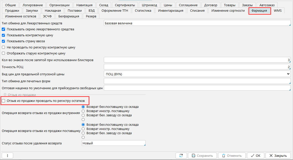 Операция возврата отзыва из продажи внутренняя - для возврата товара из аптеки на склад