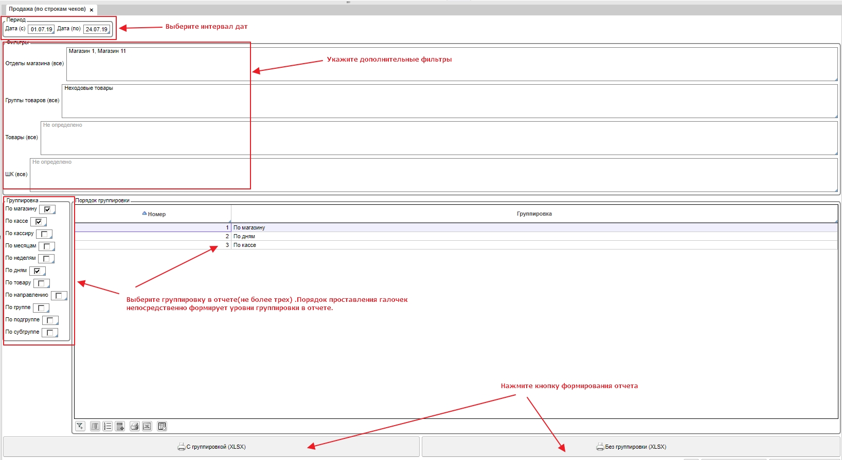 Отчет по розничным продажам с детализацией по строкам чеков