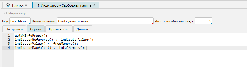 Как вычисляется текущее значение индикатора определяется кодом на языке lsFusion на вкладке Скрипт.
