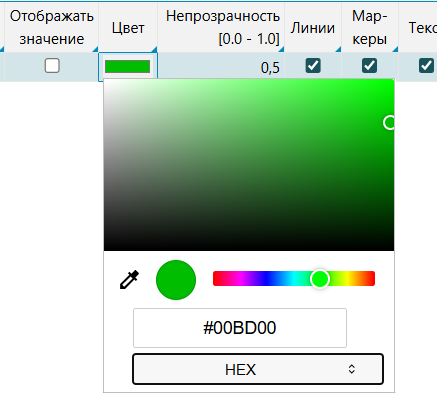 Непрозрачность - прозрачность линии графика. Чтобы настроить, нужно установить число от 0 до 1, чем меньше число, тем прозрачнее линия графика. Если не указывать, то значение по умолчанию =1.