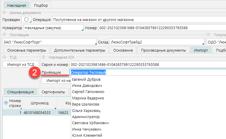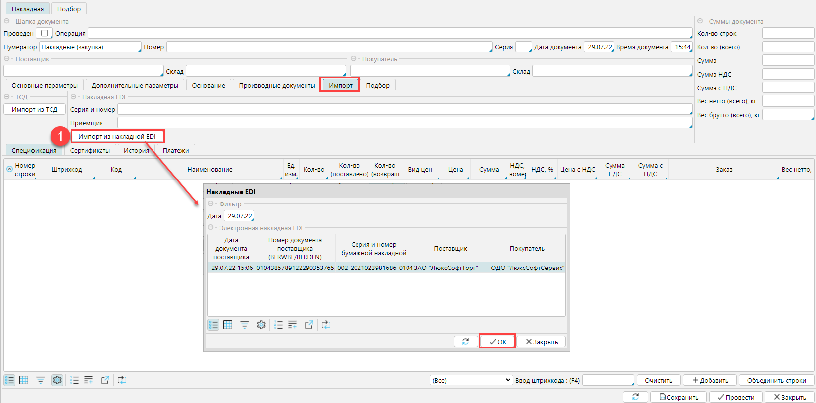 Рис. 3 Импорт данных из электронной накладной
