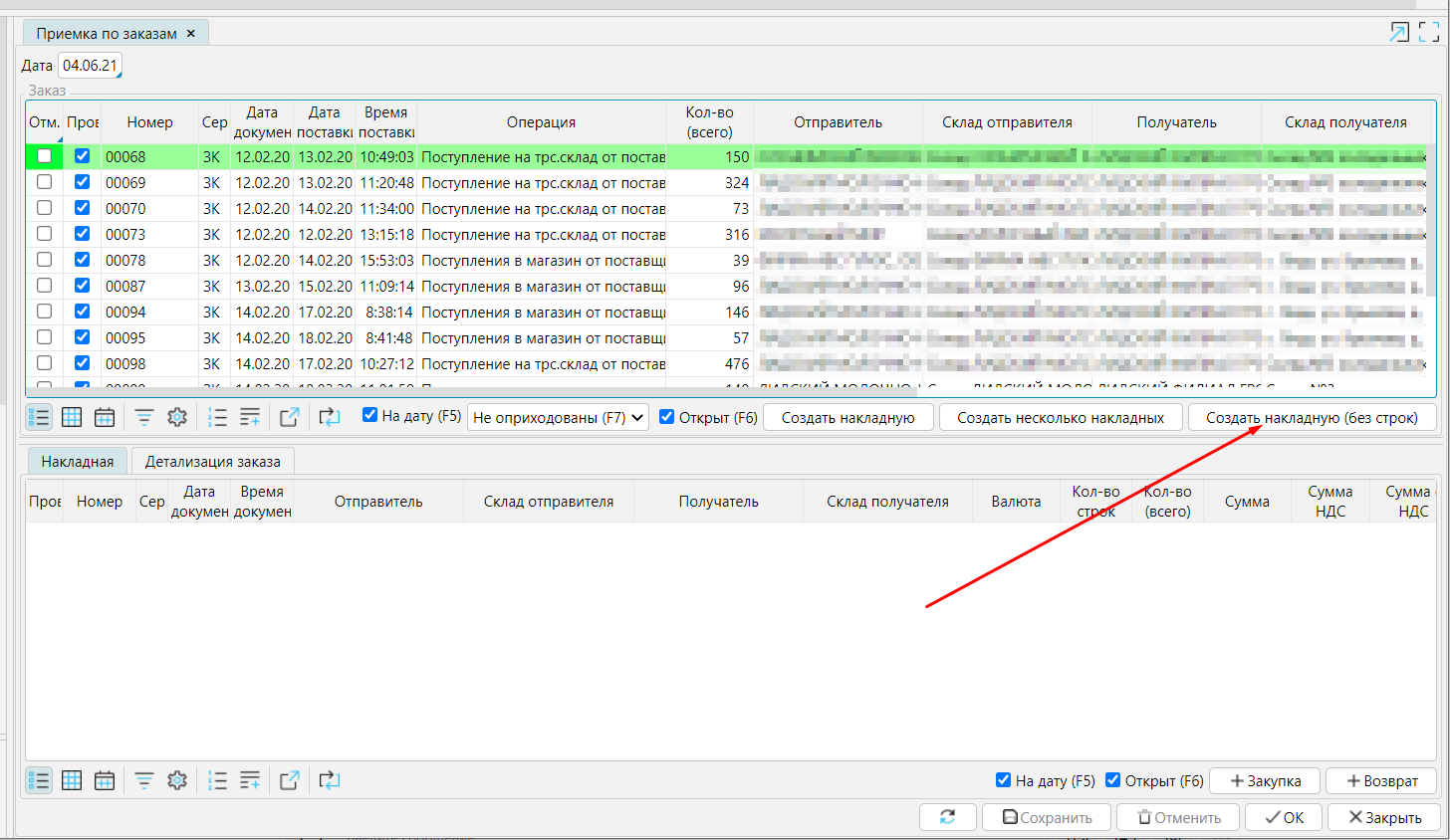 3. Создание накладной по электронной накладной на основе заказа