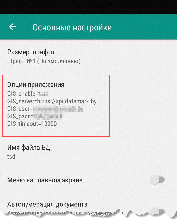 На терминале эти настройки находятся в меню Настройки - Основные настройки - Опии приложения. Примите во внимания, что если настроить опцию на устройстве, то при обновлении базы на ТСД настройки перезапишутся теми, которые установлены в системе.