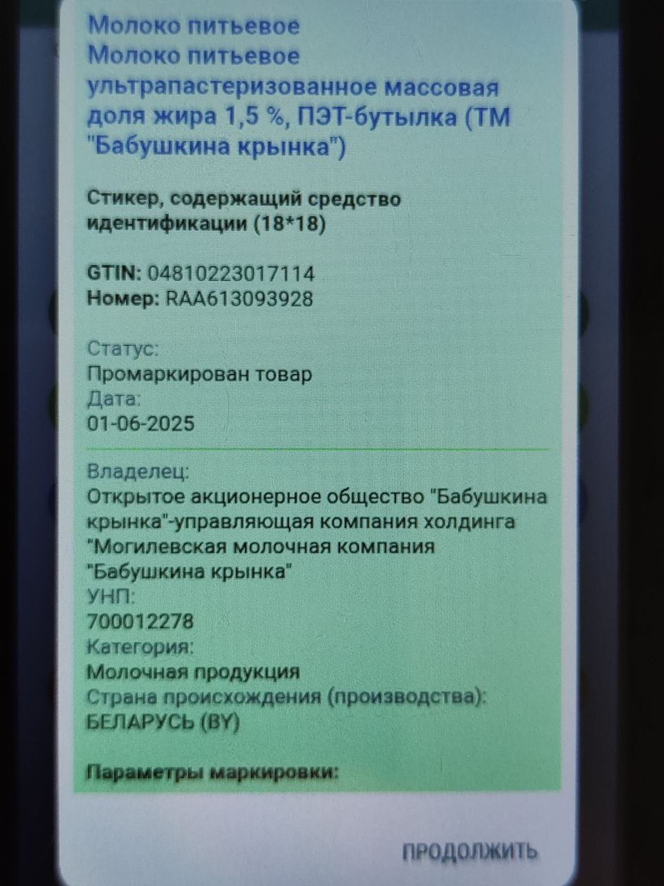 Проверка статуса марки на ТСД