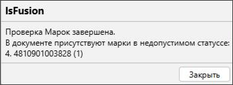 Если в результате проверки будут обнаружены марки с недопустимым статусом, то программа отобразит предупреждение и выведет на экран список марок и их статусов, чтобы определить недопустимую марку.