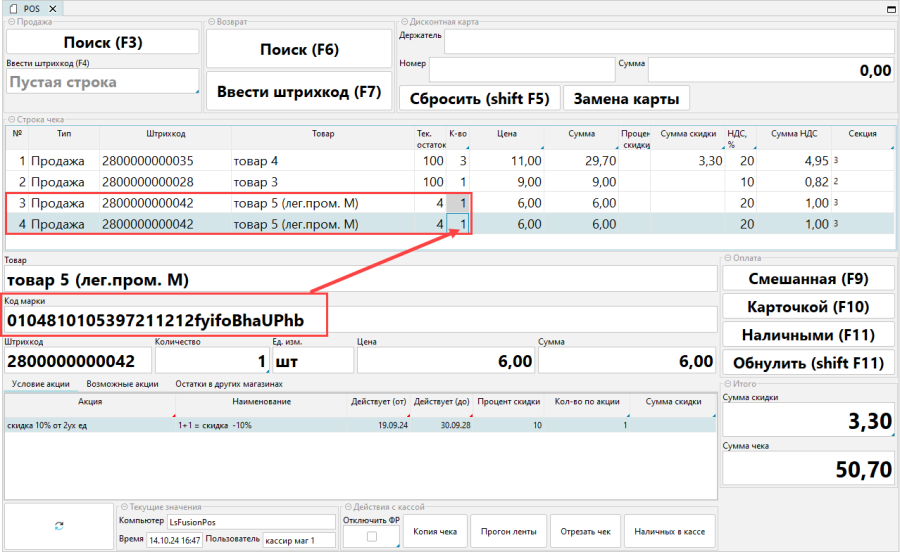 Работа с маркированным товаром на POS