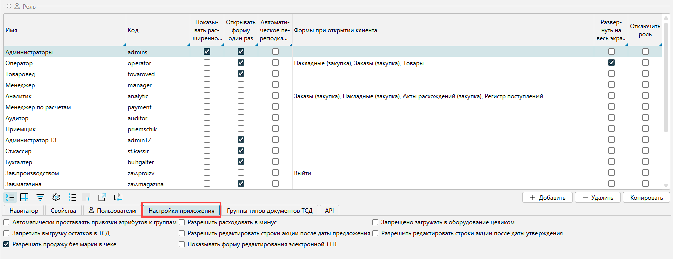 Рис. 6 Настройка доступа для продажи маркированного товара без сканирования марки