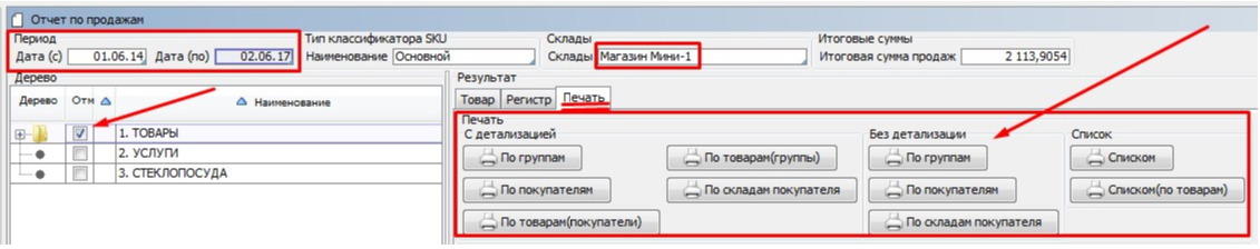 Заходим на форму Отчет по продажам модуль Продажи раздел Отчеты.