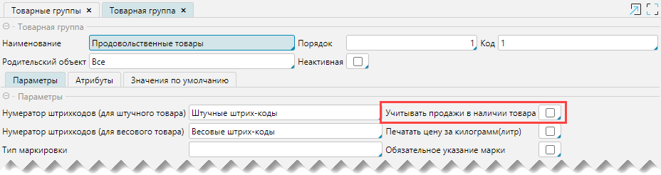 Чтобы в описанной ситуации товар попадал в расчет, в группе товара или на форме единицы измерения такого товара необходимо включить признак Учитывать продажи в наличии товара.