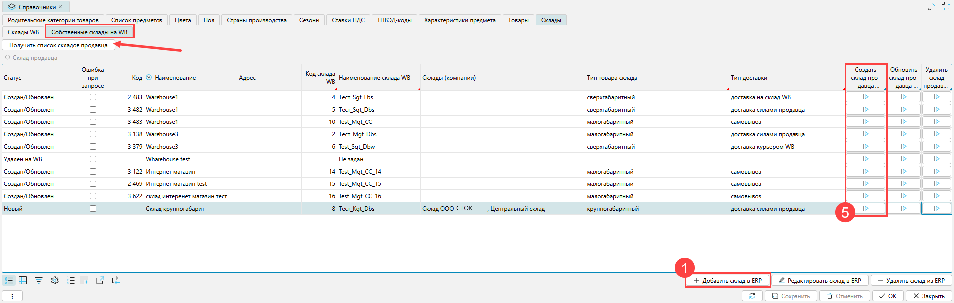 Редактирование и удаление собственных складов на WB