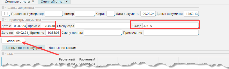 Сменный отчет – это хранимый документ в системе, в котором содержатся данные по движению и состоянию топлива за смену.
