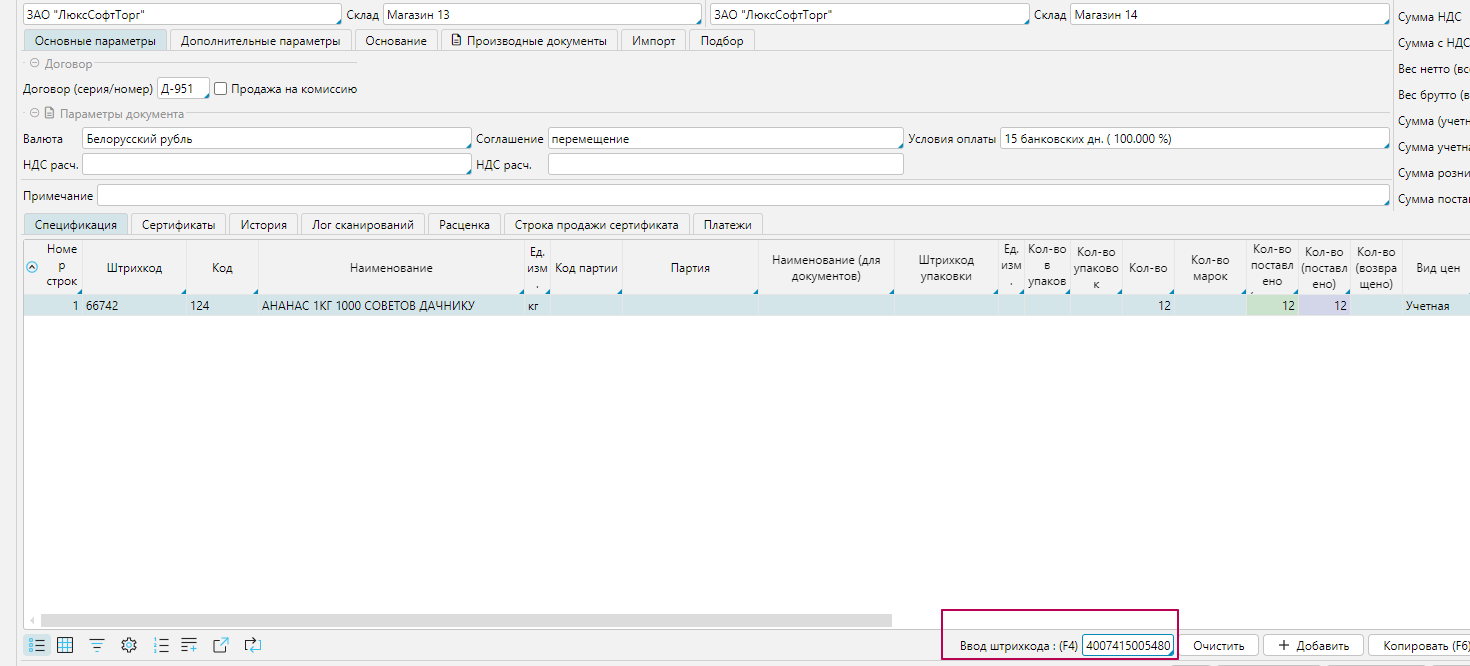 - либо в нижней части формы в окно "Вод штрихкода" внести штрихкод и нажать Enter