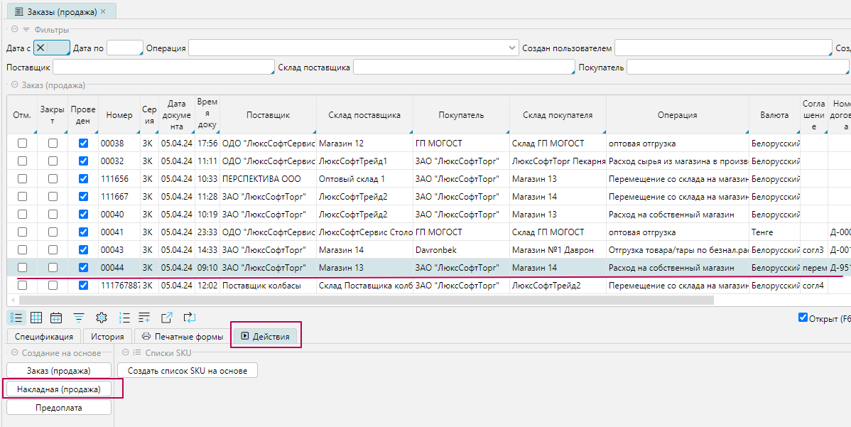 Модуль Продажи / раздел Продажи / форма Накладные(продажа)