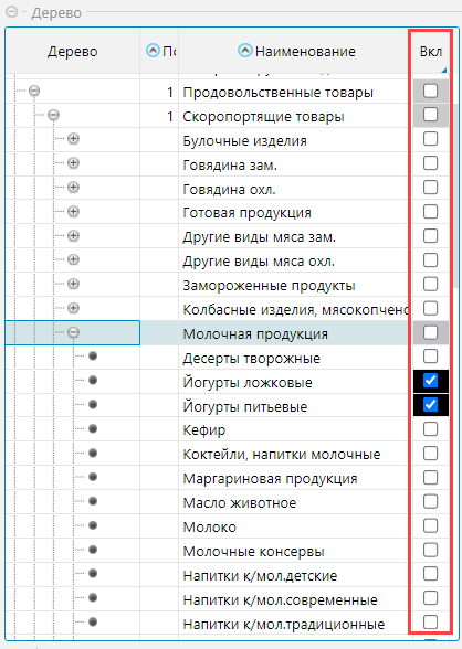 В блоке Дерево необходимо отметить группы товаров, для которых создается матрица.
