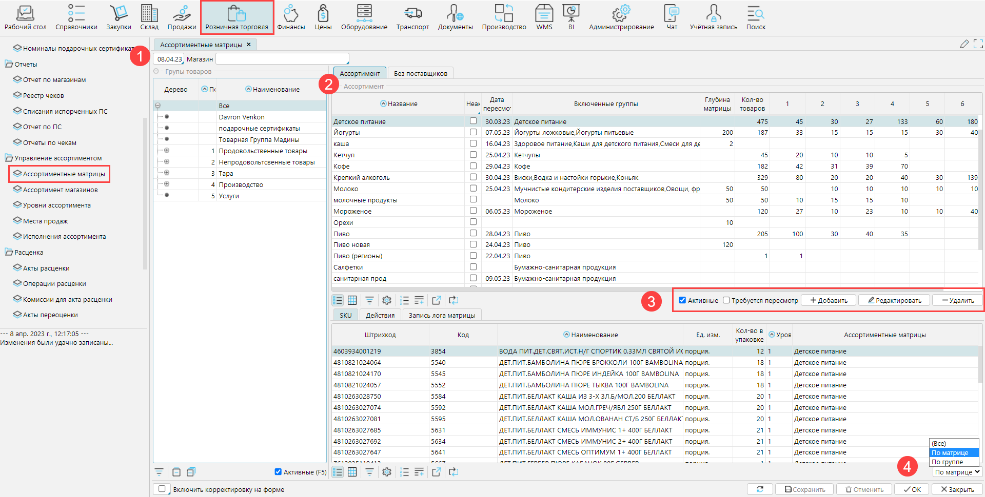 Все ассортиментные матрицы отображаются на форме Розничная торговля - Управление ассортиментом - Ассортиментные матрицы (рис. 1 ).