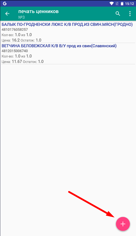 На терминале сбора данных (ТСД) необходимо создать и выгрузить в систему документ Печать ценников со списком товаров, на которые надо напечатать ценники.
