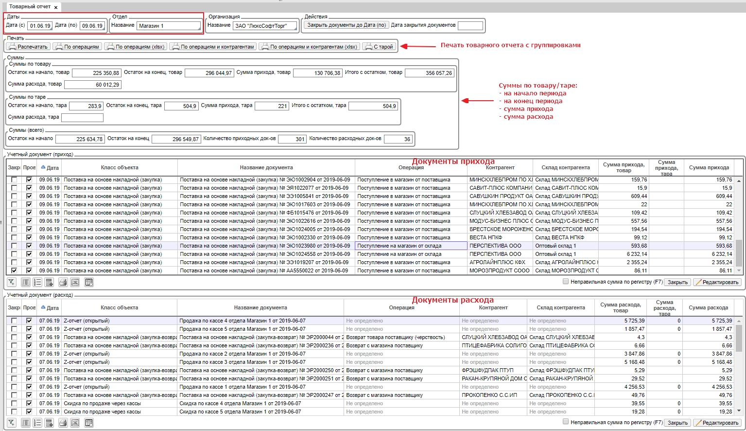Также, на форме есть кнопка Закрыть документы до Дата(по) и поле для внесения даты. Эта функция позволяет ответственному лицу после выверки данных, присвоить документам статус Закрыт до указанной даты+1.