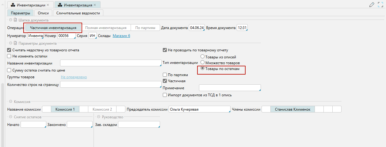 Пример проведения частичной инвентаризации:
